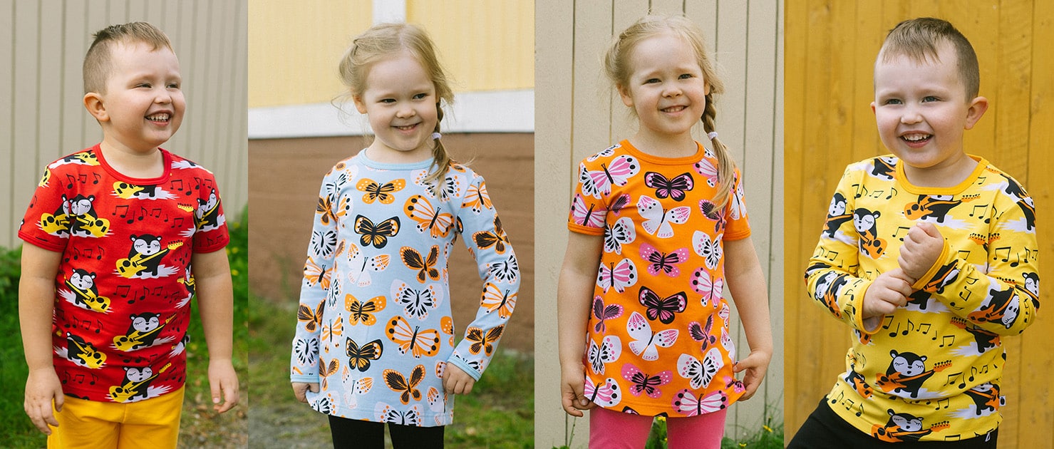 Keväinen lastenvaatemallisto kylpee väreissä ja pistää mielikuvituksen laukkaamaan. Uutuusvaatteiden malleja ovat pitkähihaiset Uljas paita ja Vieno tunika sekä lyhythihaiset Visa T-paita ja Viola tunika. Kokoja löytyy väliltä 86-140.