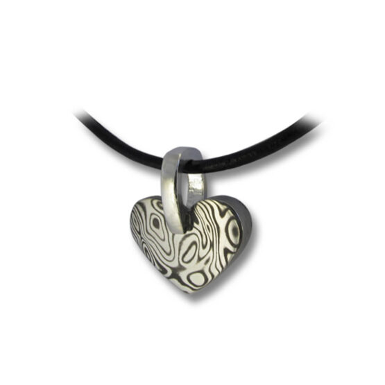 Damastiteräksestä valmistettu yksilöllinen Pieni paksu sydänriipus on täydellinen välikappale rakkaudentunnustuksen tekemiseen. Jokainen damastiteräksestä valmistettu sydän on hieman erilainen ja erityinen kuten korun kantajakin.
