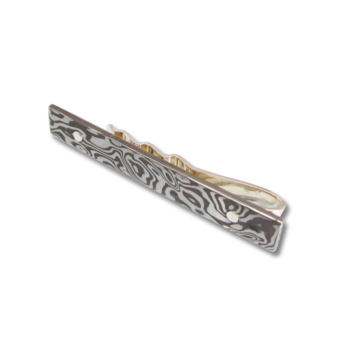 Yksilöllinen Damastikoru solmioneula valmistetaan damastiteräksestä ja hopeasta. Solmioneula on erittäin juhlallinen ja se korostaa pukeutumisen arvokkuutta.
