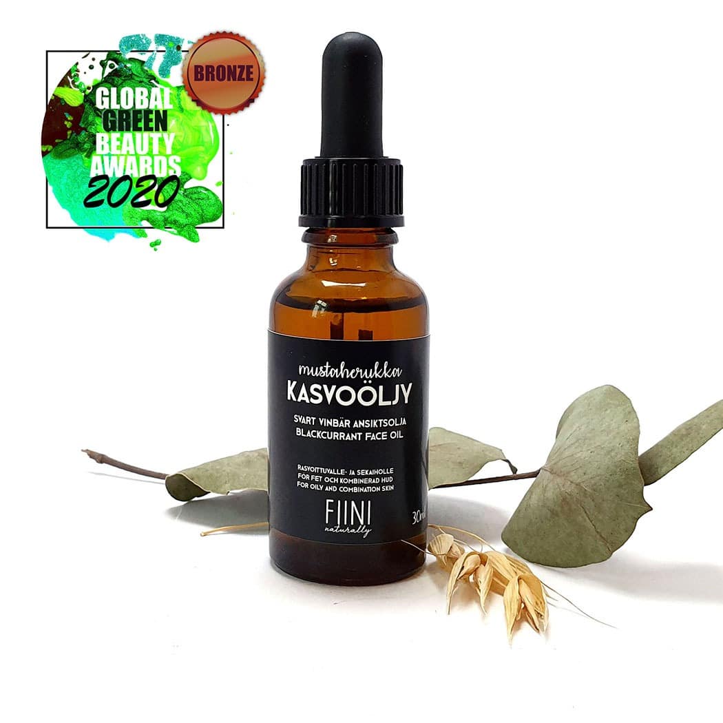 Fiini Naturally Mustaherukka kasvoöljy rauhoittaa ja tasapainottaa ihoa. Kasvoöljy soveltuu erityisen hyvin sekaiholle, rasvoittuvalle iholle sekä iho-ongelmien hoitoon.