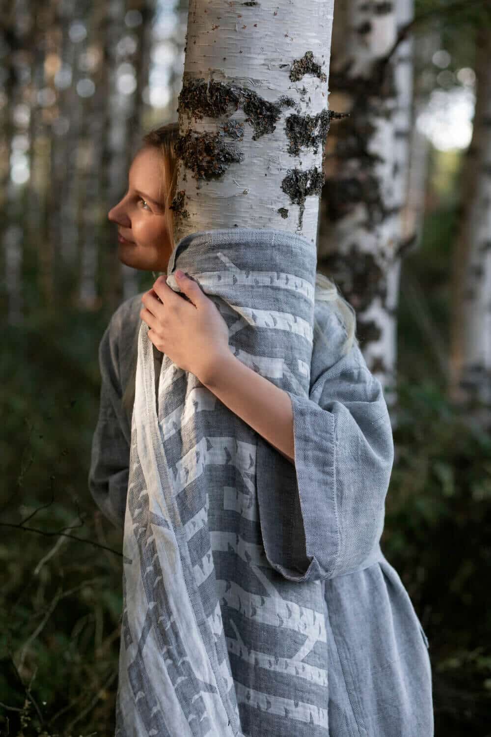 Lapuan Kankurit Koivu Kylpypyyhe on tyylikäs, kevyt ja imukykyinen pyyhe tuomaan ylellisyyttä jokaiseen kylpyhetkeen. Perinteistä suomalaista maisemaa kuvastavat koivunrungot saavat kuosissa ripauksen modernia tyyliä ja rentoa rytmikkyyttä. Koivu-sarjan on suunnitellut Marja Rautiainen, joka on yksi Lapuan Kankureiden pitkäaikaisimmista suunnittelijoista. Hänen työnsä kuvastavat kunnioitusta suomalaista tekstiiliperinnettä kohtaan.
