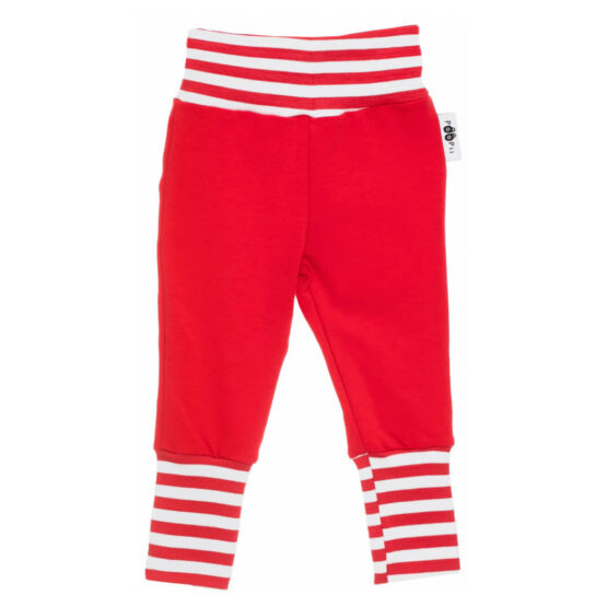 PaaPii Design Baby Sisu vauvan collegehousut punainen ovat taatusti mukavat pöksyt vauvaikäiselle. Kangas on pehmeää ja mukavan joustavaa luomupuuvillaa. Housuissa on joustavat ja käännettävät resorit vyötäröllä sekä lahkeissa. Tämä lisää housujen käyttöikää sekä pitää housut hyvin jalassa hurjimmissakin leikeissä.