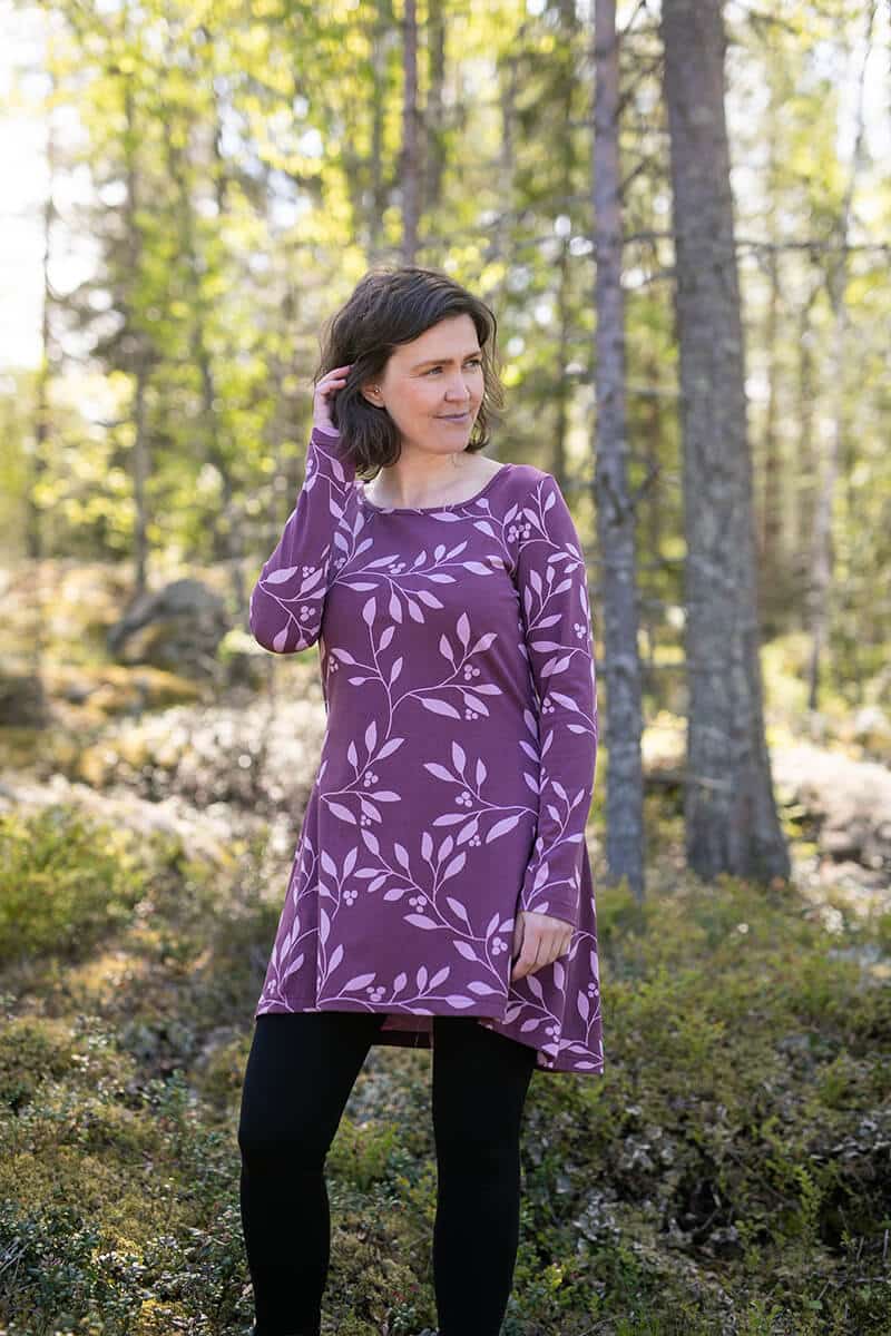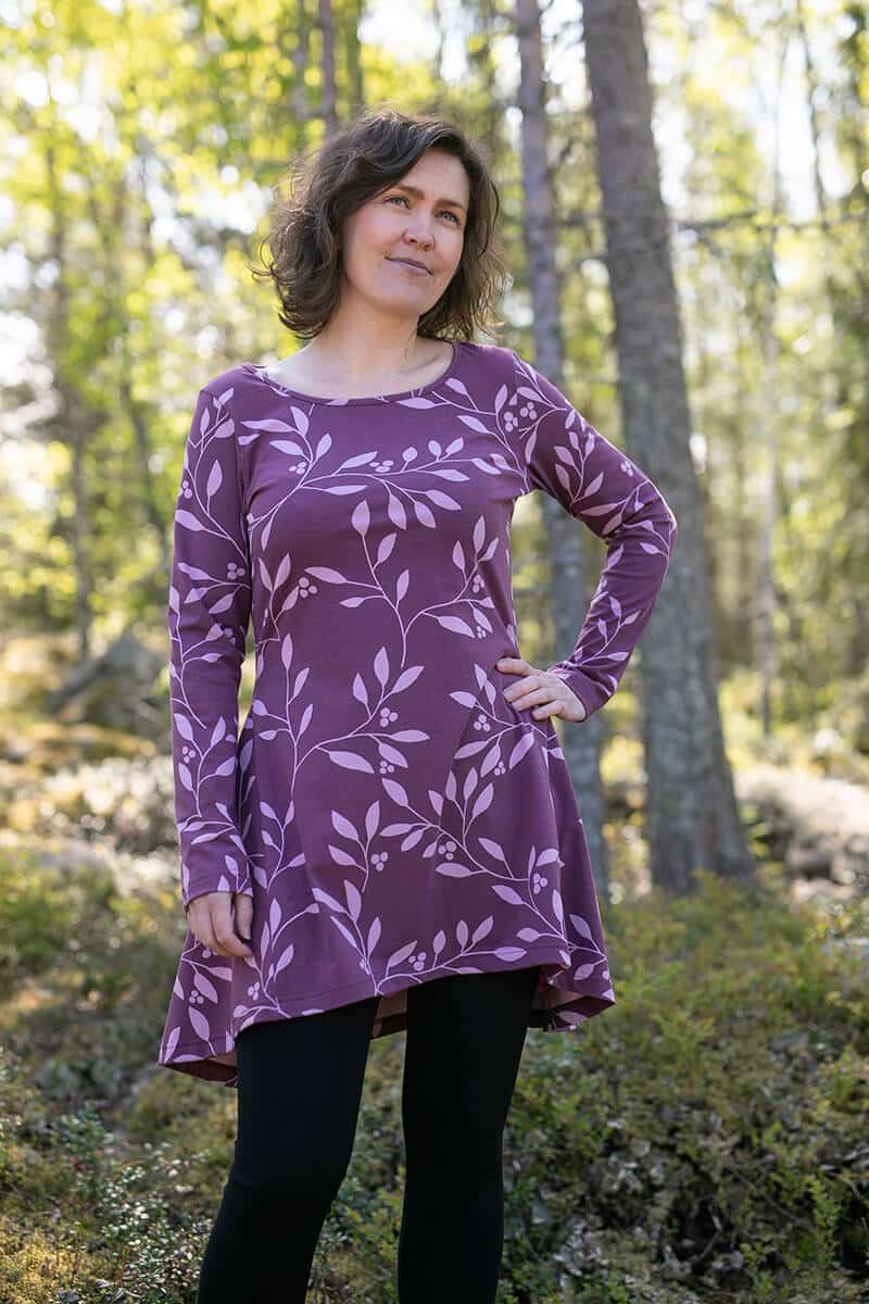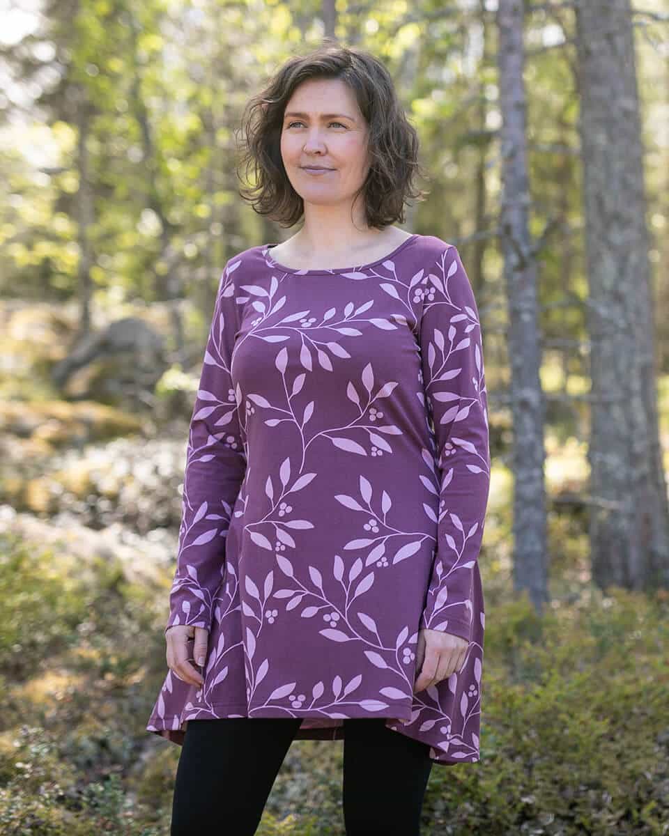 PaaPii Design Heija tunika Lehvästö lila-punajuuri on tyylikäs, kauniisti laskeutuva ja ihanan pehmeä pitkähihainen tunika. Kauniin istuvuuden salaisuus piilee tunikan kekseliäässä leikkauksessa.