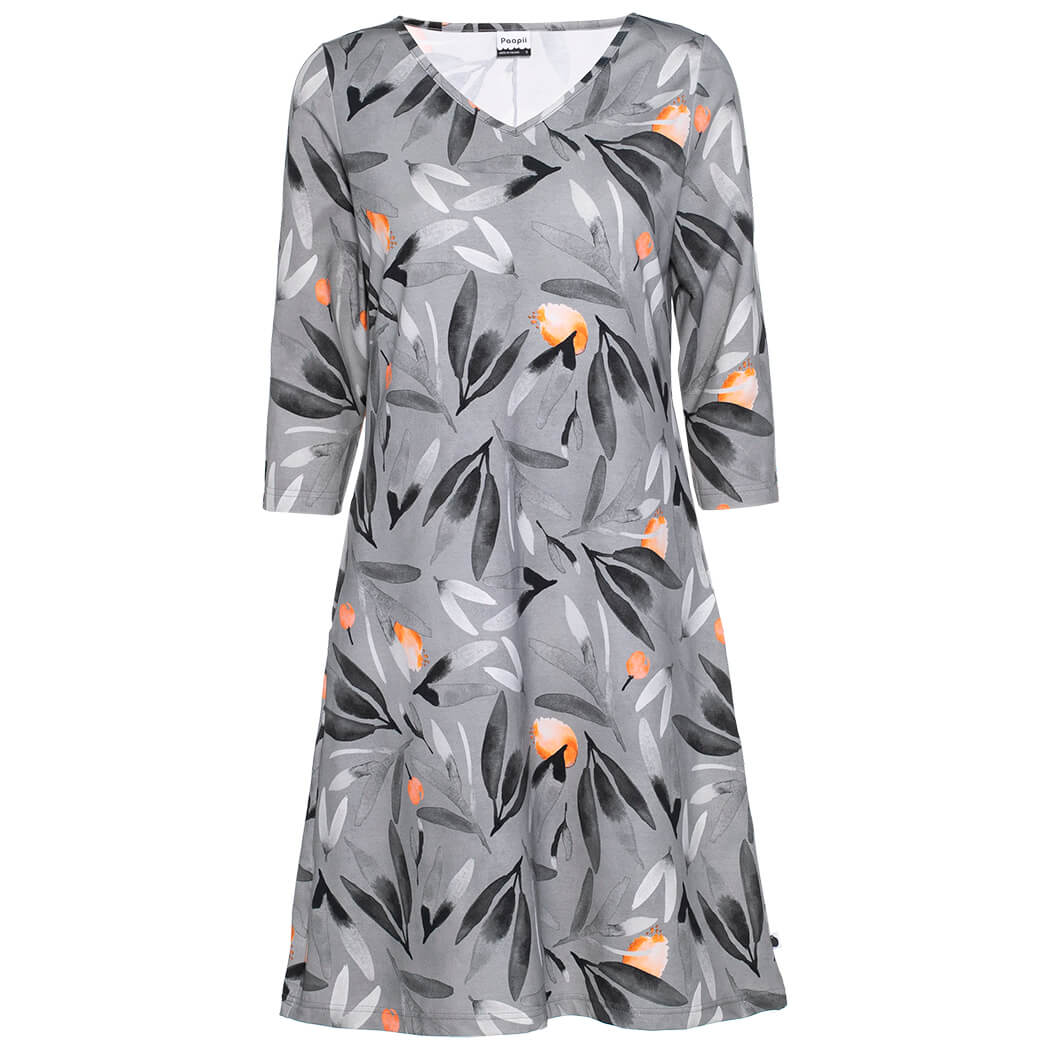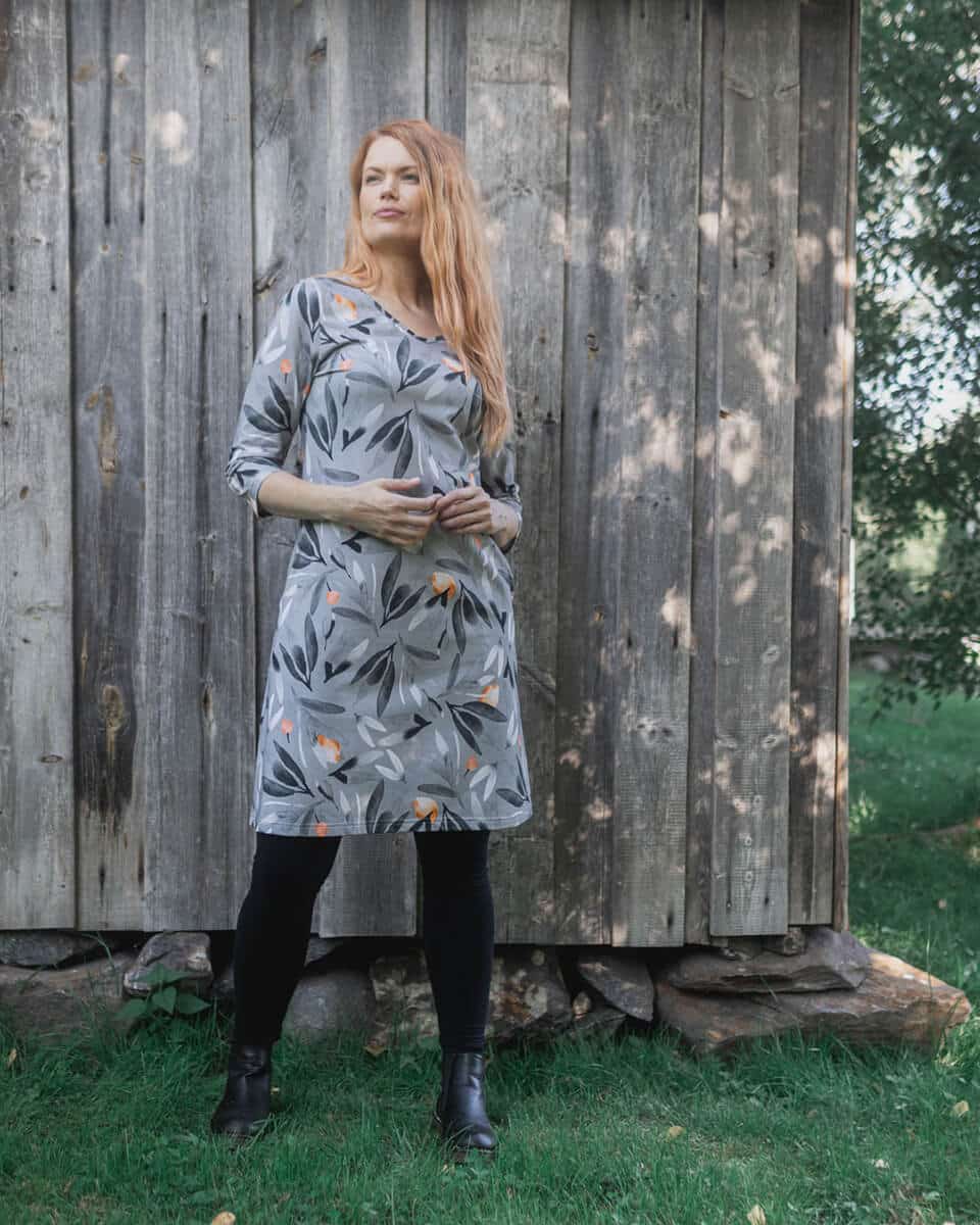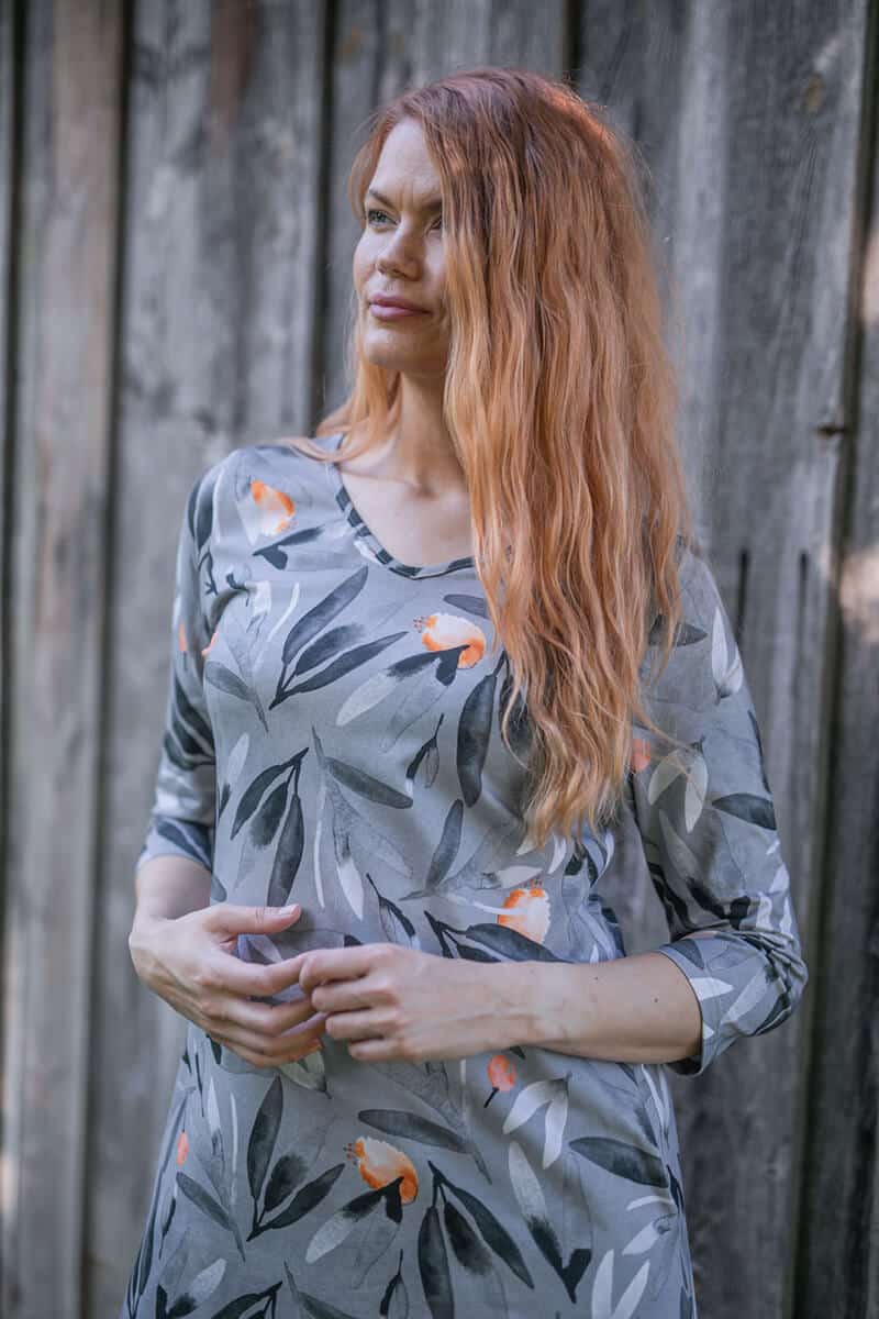 PaaPii Design Saima mekko Luonnonvoima harmaa on vuoden 2024 uutuusmekko. Polvipituus, ¾-hiha ja v-pääntie ovat monien toivelistalla ja Saima mekosta löytyy ne kaikki. Ihastuttava Luonnonvoima kuosi on harmoninen ja herkkä. Tyylikäs kotimainen Saima mekko sujahtaa päälle helposti ja on moneen menoon sopiva. Syksyn luottomekko, joka poistaa pukeutumispulmat.