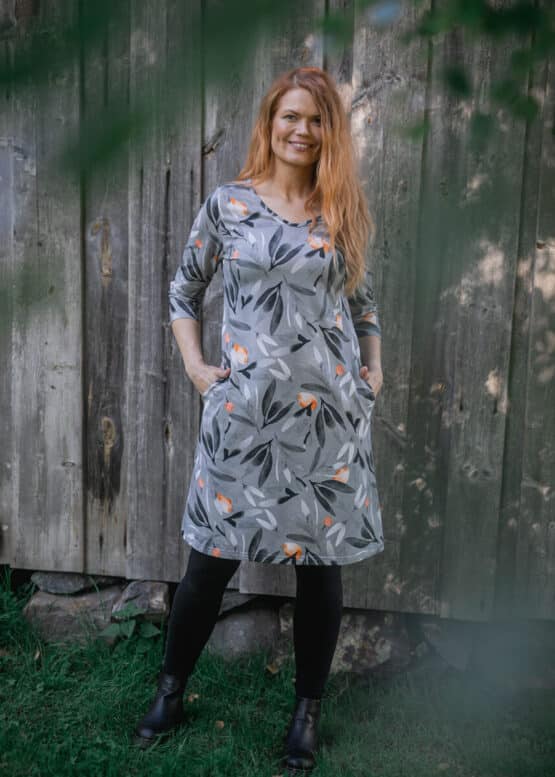 PaaPii Design Saima mekko Luonnonvoima harmaa on vuoden 2024 uutuusmekko. Polvipituus, ยพ-hiha ja v-pรครคntie ovat monien toivelistalla ja Saima mekosta lรถytyy ne kaikki. Ihastuttava Luonnonvoima kuosi on harmoninen ja herkkรค. Tyylikรคs kotimainen Saima mekko sujahtaa pรครคlle helposti ja on moneen menoon sopiva. Syksyn luottomekko, joka poistaa pukeutumispulmat.