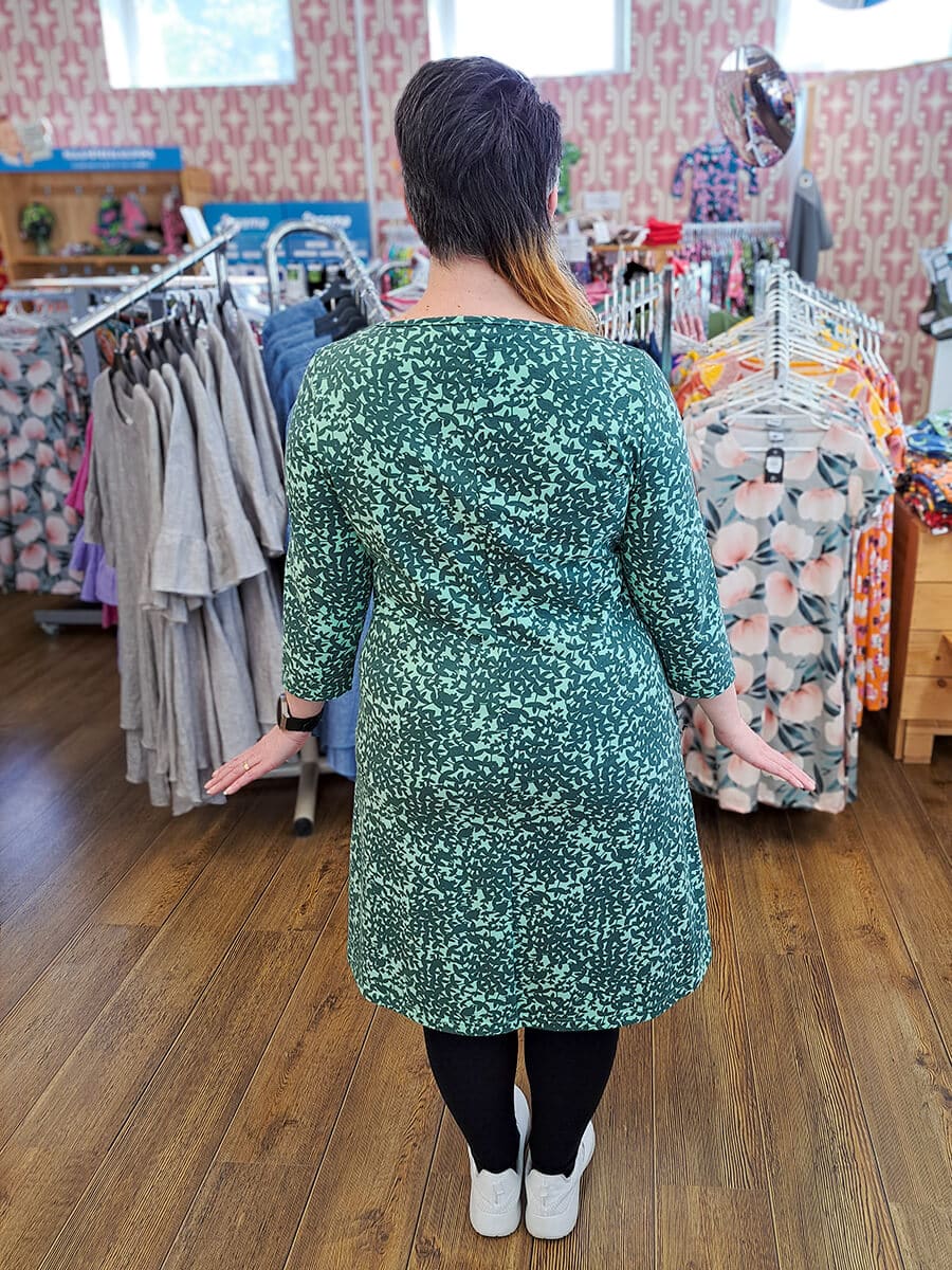 Laadukas luomupuuvillatrikoo on joustavaa ja ihanan pehmeรครค. Mekossa on takasauma joka tuo istuvuutta ja sivuilla kivat taskut.