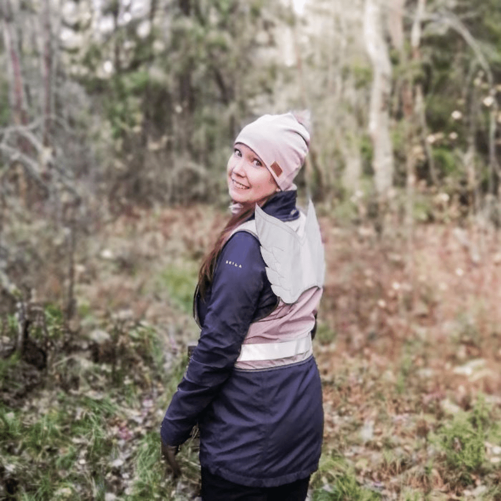 โYritykseni idea syntyi, kun lapseni kasvoivat ja kulkemiset yksin kavereille ja kouluun lisรครคntyivรคt. Markkinoilla olevat heijastinliivit olivat hankalia pukea, esteettisesti epรคmiellyttรคviรค, eivรคt istuneet tai nรคkyneet repun alta. Ostimme paljon erilaisia valoja ja roikkuvia heijastimia, mutta ne oli hankala kiinnittรครค ja olivat aina hukassa ja pahimmassa tapauksessa repivรคt irrotessaan takin tai repun kangasta. En voinut luottaa, ettรค lapseni nรคkyi pimeรคssรค, joten jotain oli keksittรคvรค. Suojelus Design sai nimensรค tunteesta, jonka sain kun ompelin ensimmรคisen liivin, lapseni on suojassa.โย ย ย ย ย ย ย -Elina, Suojelus Design