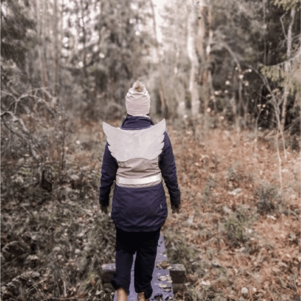 Liivi loistaa ja suojaa pimeรคssรค tyรถmatkalla, lenkkeillessรค ja ulkoillessa. Upeat heijastavat enkelinsiivet nรคkyvรคt myรถs repun alta!
