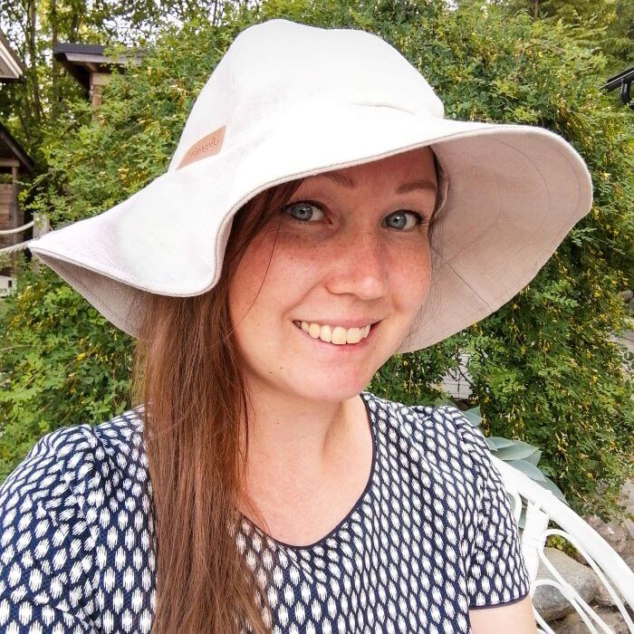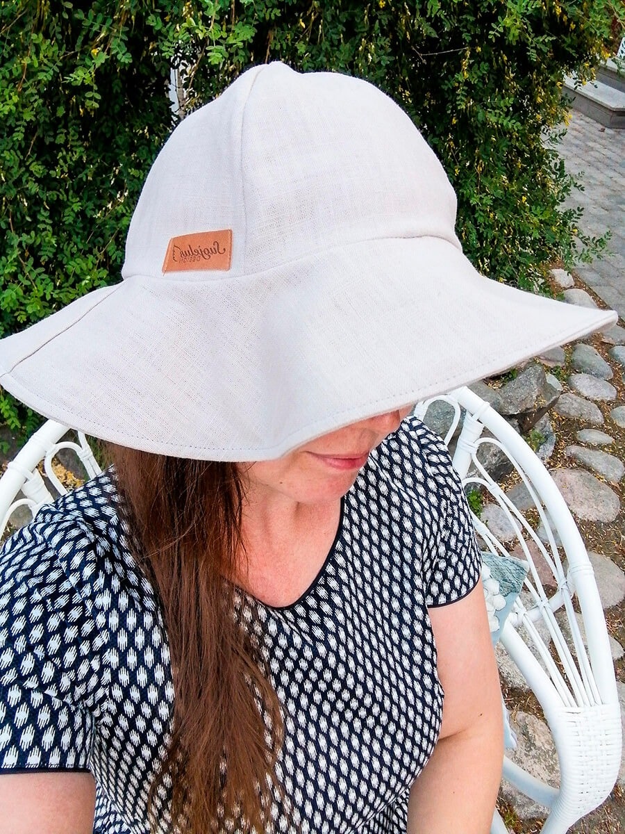 Tyylikäs Suojelus Design pellavahattu suojaa hyvin auringolta ja herättää kesätyylisi eloon! Tähän naisten hellehattuun on lisätty tukikangas lieriin, joten se kaunis iso lieri pysyy ylhäällä ja aaltoilee kauniisti. Pellava on laadukas, ekologinen, mukava ja hengittävä materiaali kesähelteillä.
