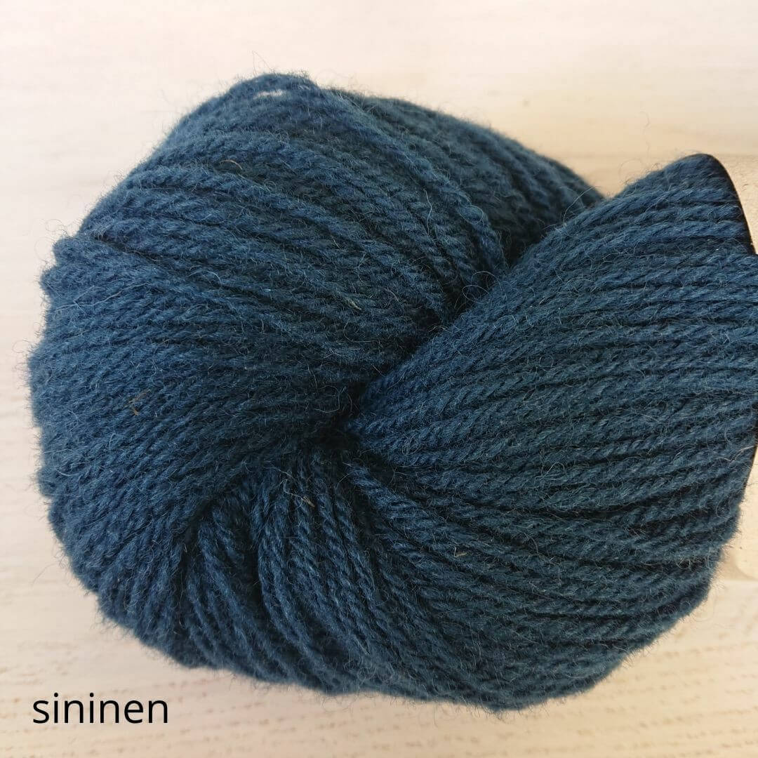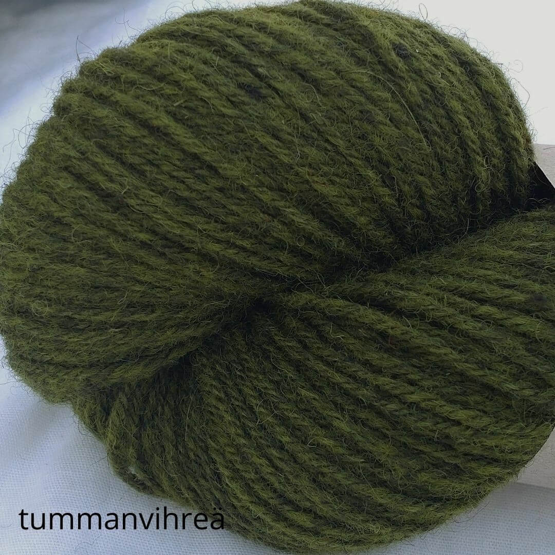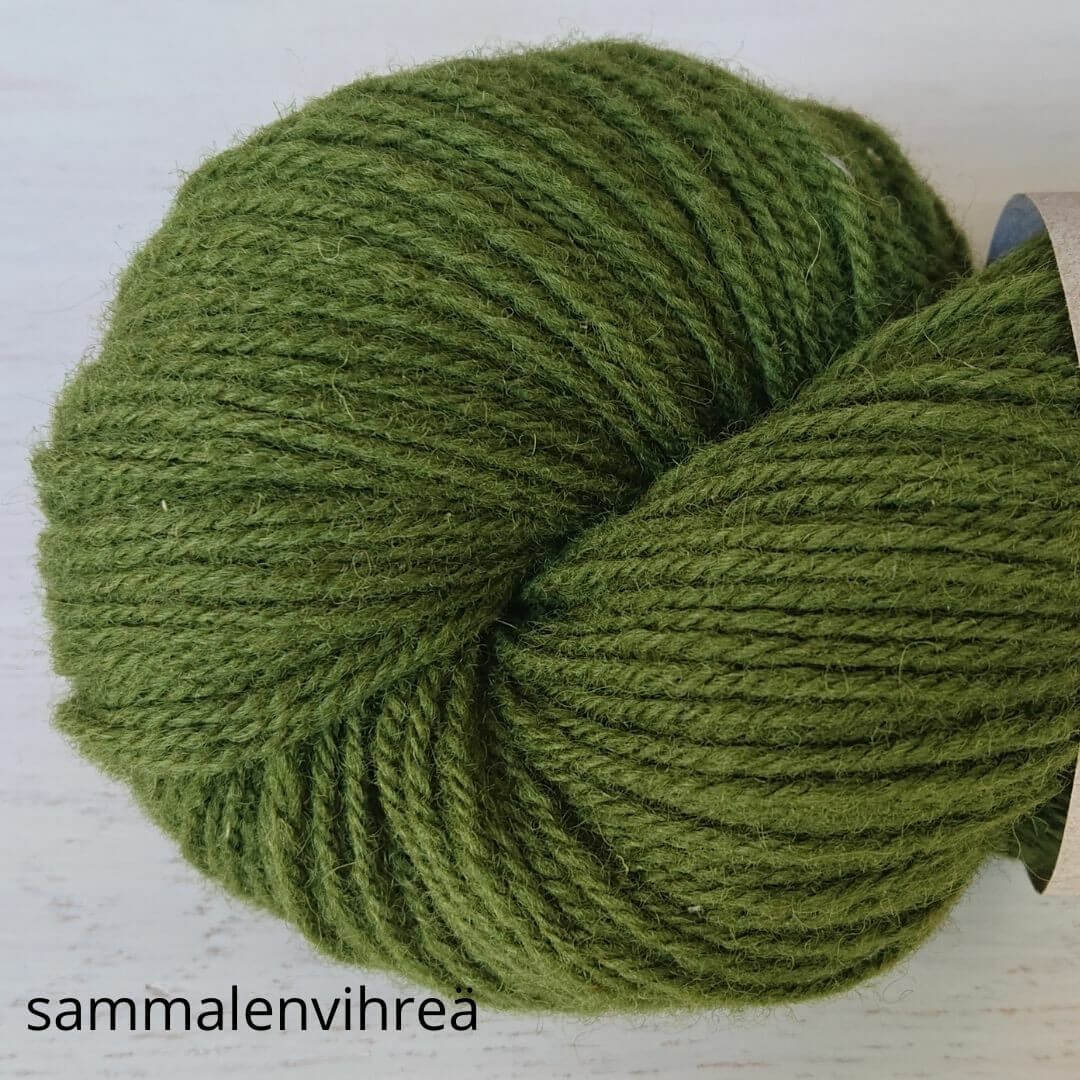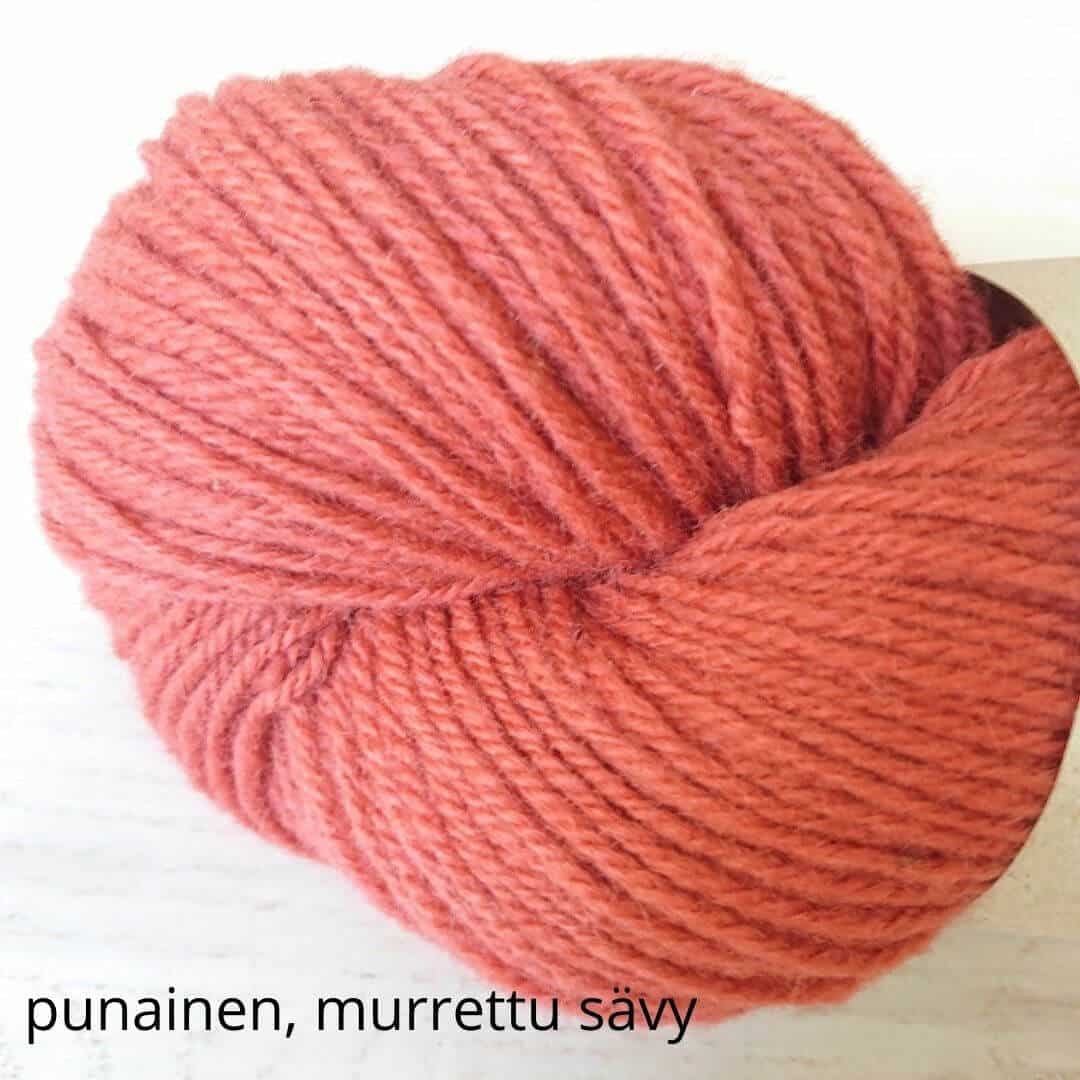 Hyvä suomalainen villalanka, tasainen neuloa. Ei eripaksuisia kohtia. Arvostan sitä, näin neuleen pinnasta tulee kaunis. Korvasin tällä ohjeen lettlopin ja toimi oikein hyvin. Värit oikein hyvät, luonnonläheiset.
