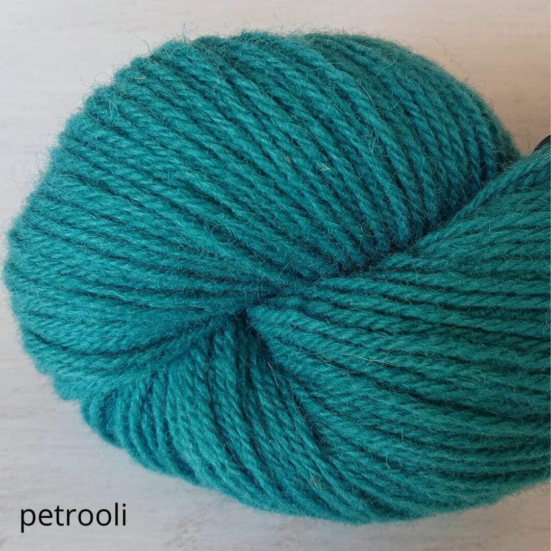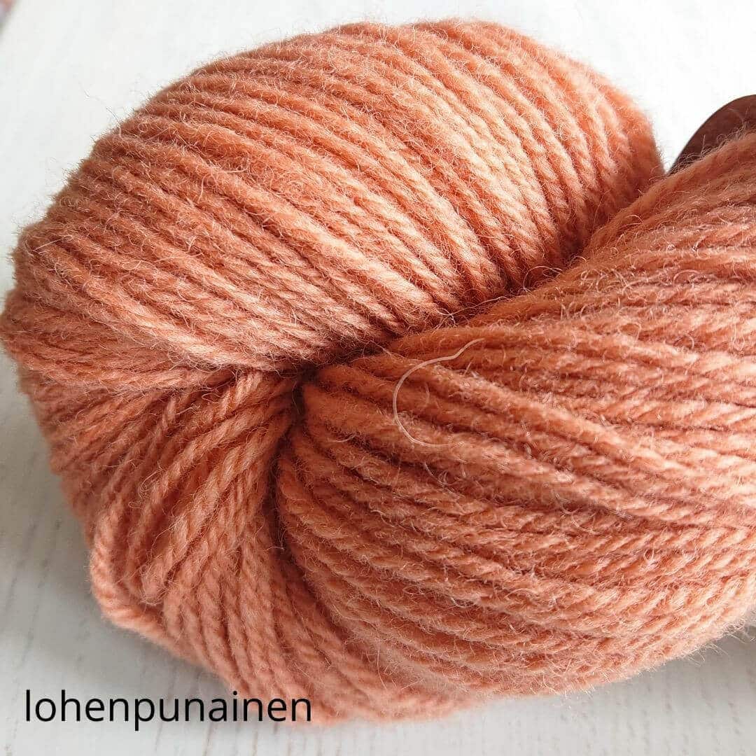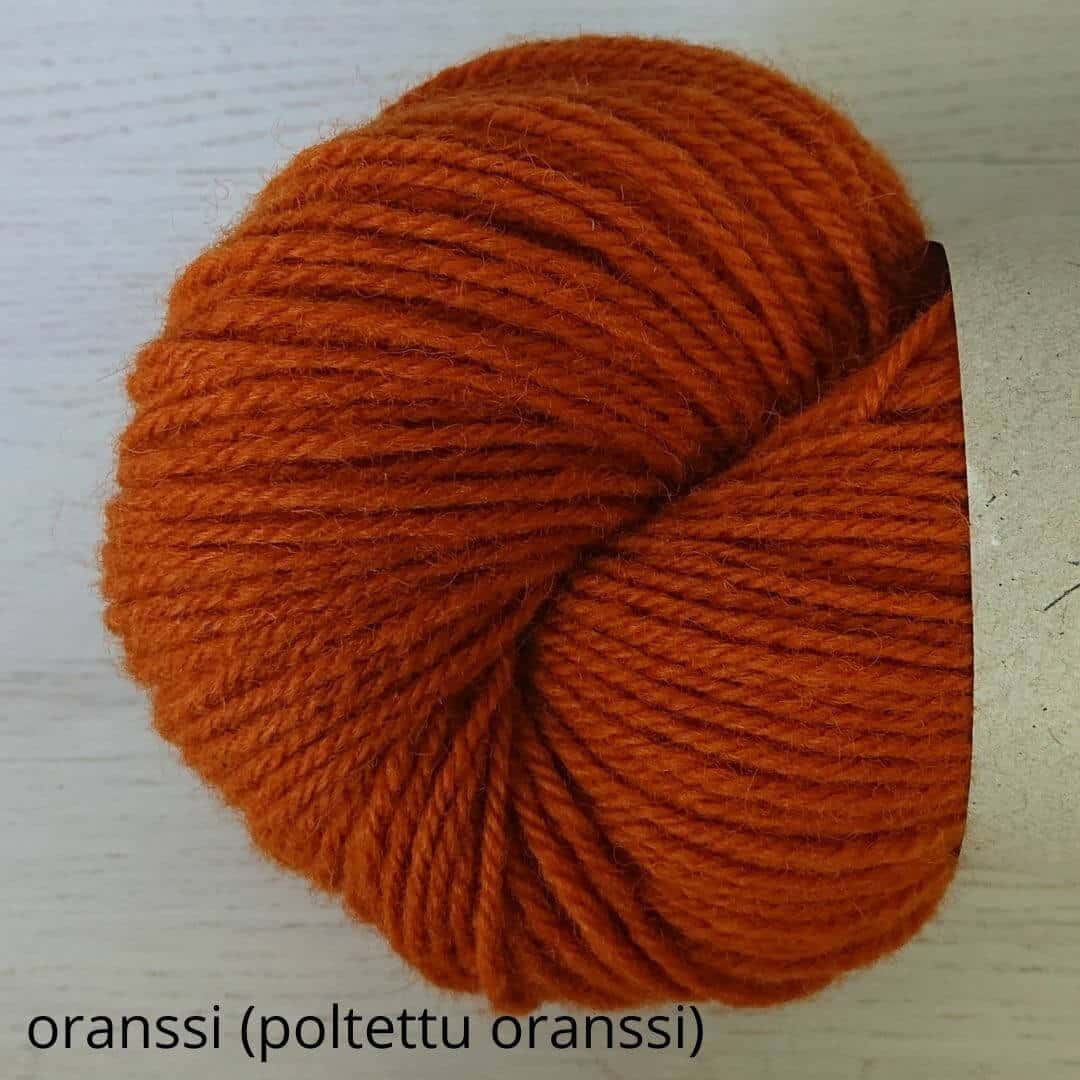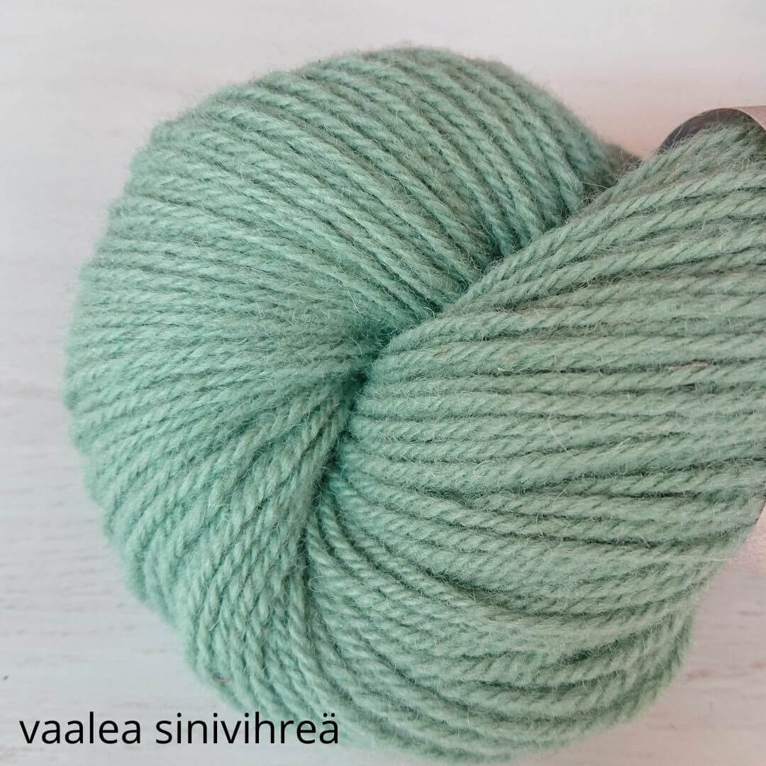 Hyvä suomalainen villalanka, tasainen neuloa. Ei eripaksuisia kohtia. Arvostan sitä, näin neuleen pinnasta tulee kaunis. Korvasin tällä ohjeen lettlopin ja toimi oikein hyvin. Värit oikein hyvät, luonnonläheiset.